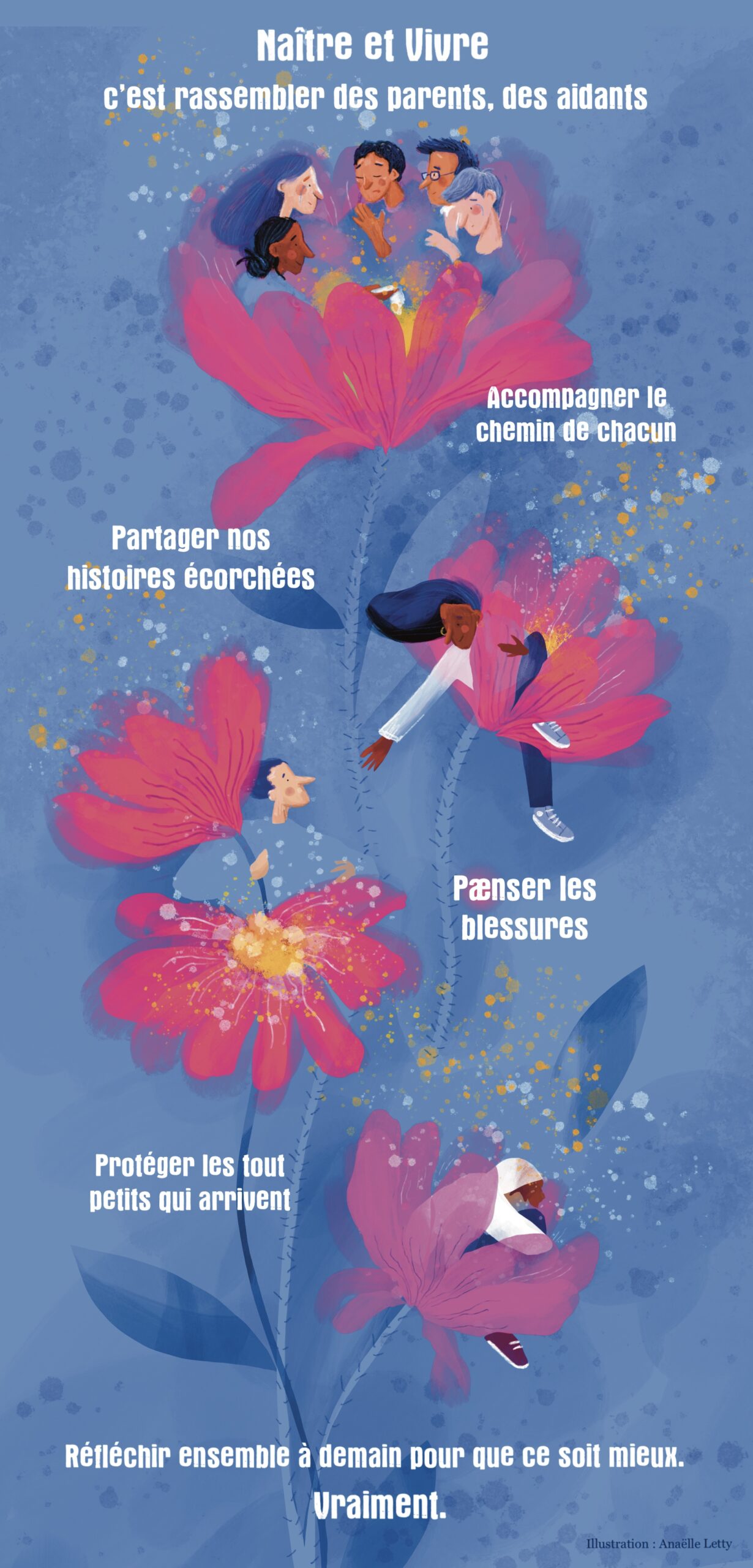 Reconnue d’utilité publique, Naître et Vivre regroupe des parents qui ont perdu un tout-petit avant la naissance, au moment de l’accouchement ou dans les premières années de vie, de la mort inattendue du nourrisson (MIN) ou d’autres causes, et des professionnels de santé ou de la petite enfance investis dans la prévention de la MIN.